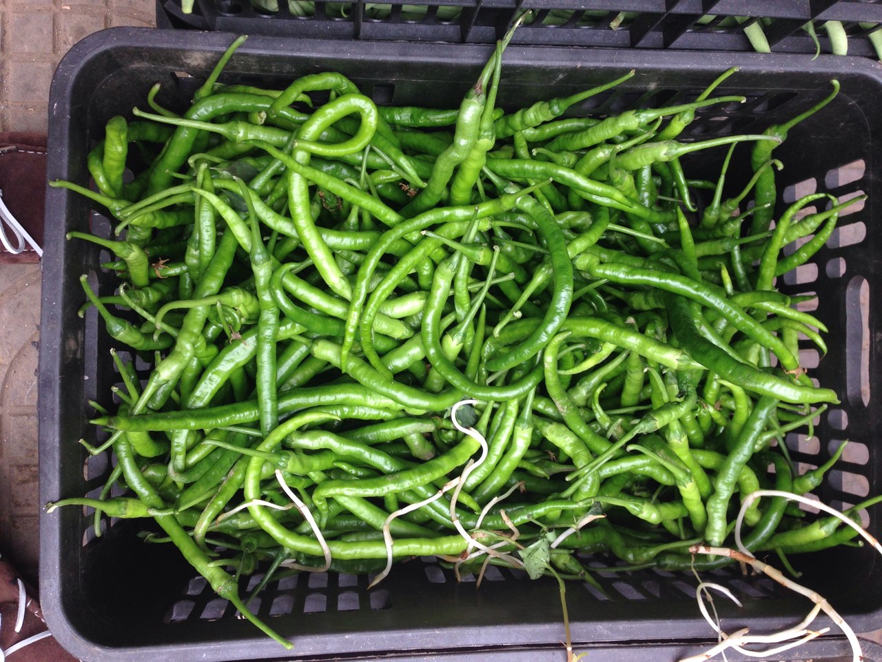 On trouve aussi des piments longs et verts. Ceux-ci sont moins forts.